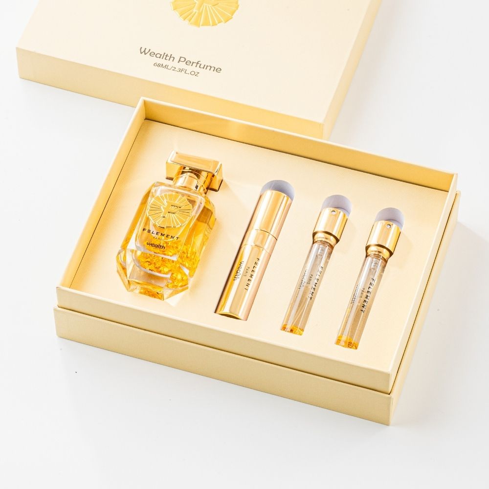 Infused with Earth and Metal elemental energies, the Wealth Perfume Set is designed for leaders who embody wisdom, steadiness, and confidence. With each application, it boosts decision-making clarity, enhances emotional grounding, and creates an aura that naturally earns respect and trust.